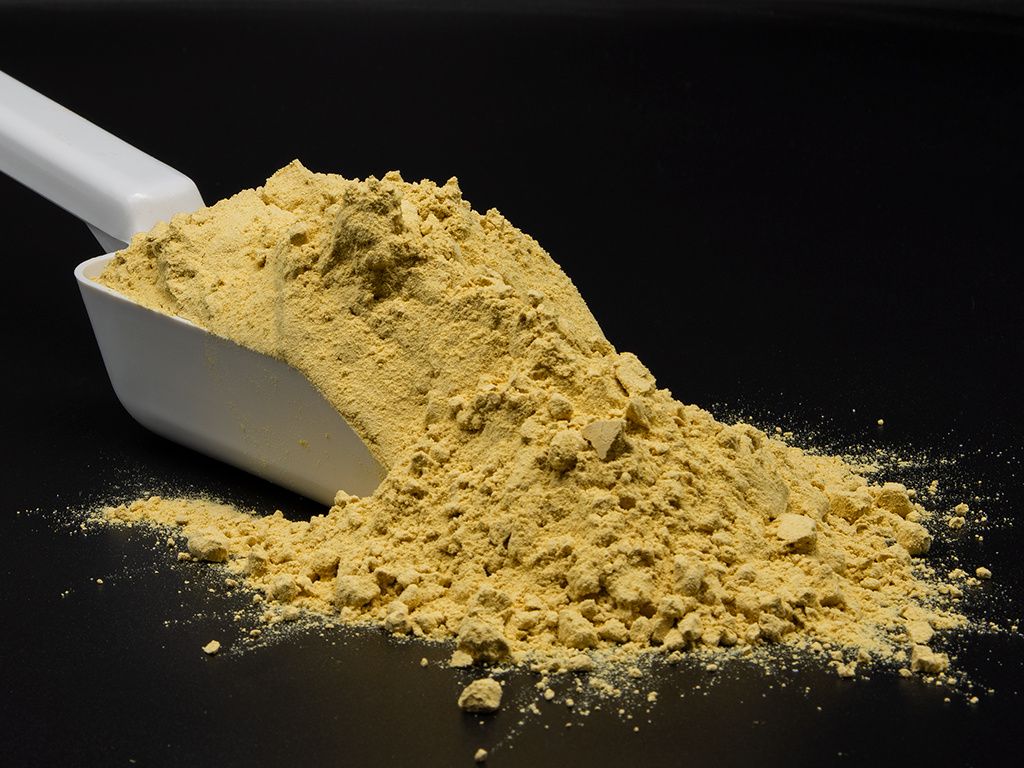 - Textur: Feines, gelbliches Pulver